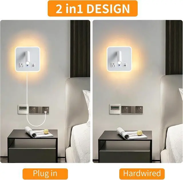 2-in-1 Design Reading Wall LightsWall light with plug in cord 70", You can just plug it into the wall outlet, without complex installer. No need to hire a electrician. Also you can Cut the plug wire wall mounted hardwired. US junction box standard. Can be installed on walls/wooden boards/headboards. The package include all installation parts.