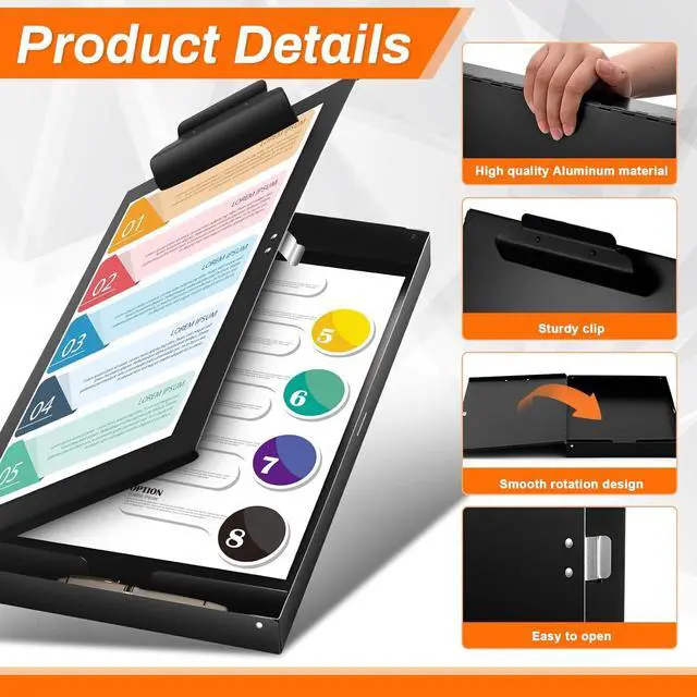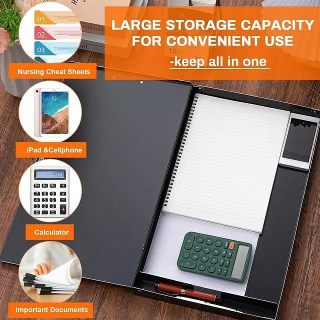 Secure and Convenient Storage: the heavy duty clipboard includes a secure latch to keep your contents safe; The automatic lock on the side facilitates your daily access and improves work efficiency; The built-in storage compartment provides easy access to your documents and supplies, making it perfect for busy work environments