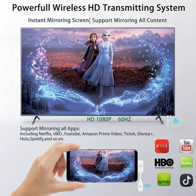 Use: Real Plug and Play experience, just plug the transmitter and the receiver adapter, small screen mirrors to large screen automatically within seconds. No setup, no need driver or app, no messy cable. No requirement for network, it works whether you have WiFi or not. It works no matter you use 2.4G or 5G WiFi. It works no matter your cast-to display supports WiFi or not. It works no matter what the quality of the video. Support Full HD 1920×1080@60 resolution output.