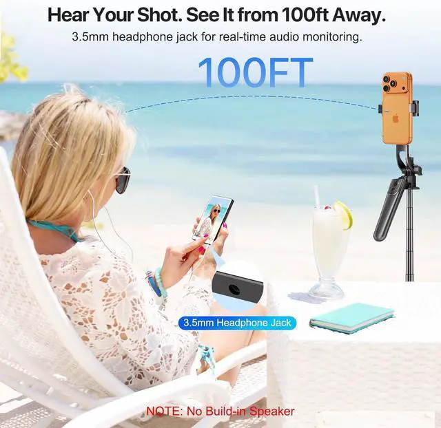 Built-In Headphone Jack for Real-Time AudioPerfect for content creators, 5" selfie monitor features a 3.5 mm headphone jack, letting you plug in headphones and monitor audio in real time while recording or reviewing footage. Hear voices, music, or ambient sound instantly without relying on your phone. (No built-in speaker. )