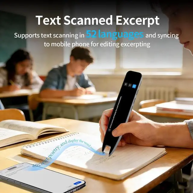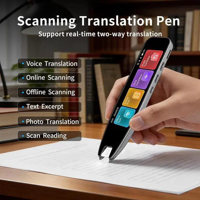 Instant Smart Scan Translation PenOur translation pen achieves high-precision scanning and translation. Features include voice translation, text extraction, online scan translation, offline scan translation, photo translation, and scan-to-read functionsmaking it an excellent reading pen for individuals with dyslexia, students, and classroom use.