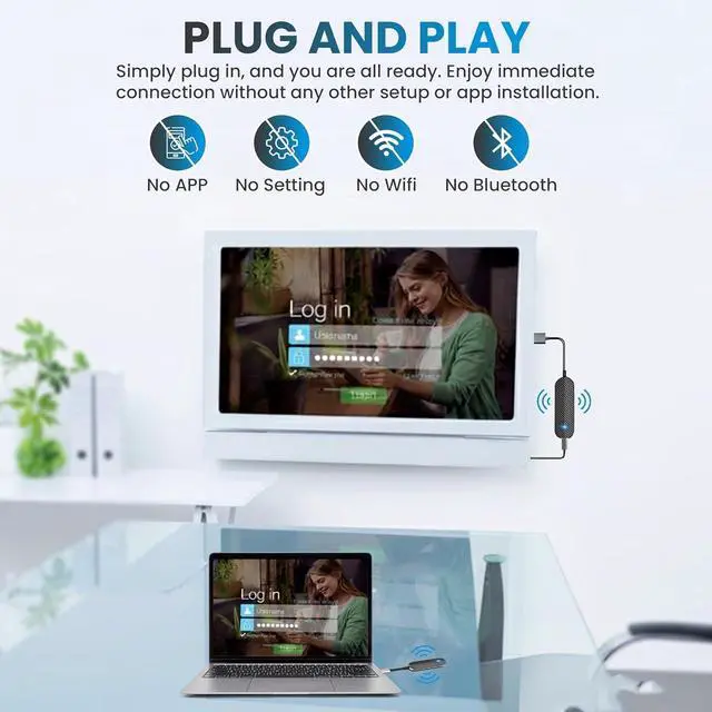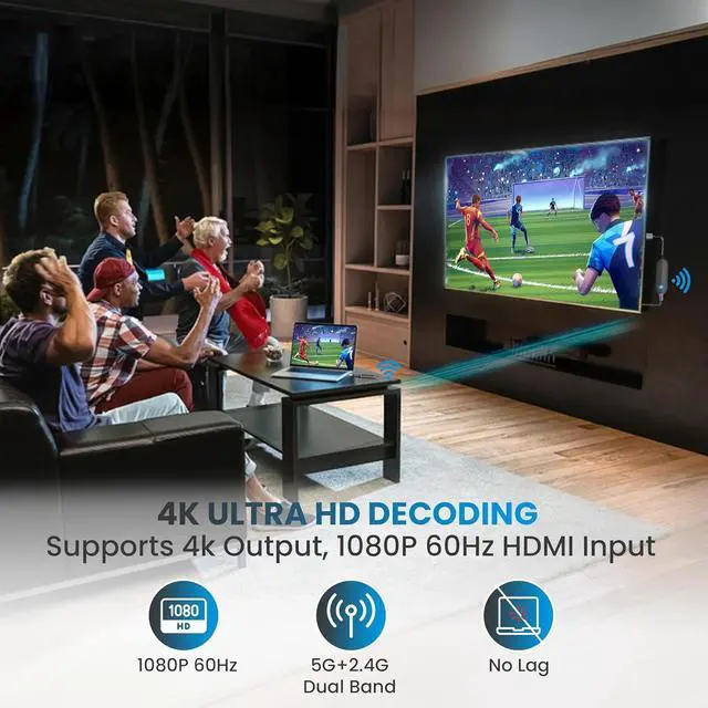 1080P Full HD output& LDS Antenna Ultra-Speed Transmission: Wireless HDMI connector supports 1080P Full HD output at 60Hz for immersive visualsideal for gaming, meetings, or home theater experiences. The integrated LDS antenna enables HD+ ultra-speed transmission, elevating your viewing experience.