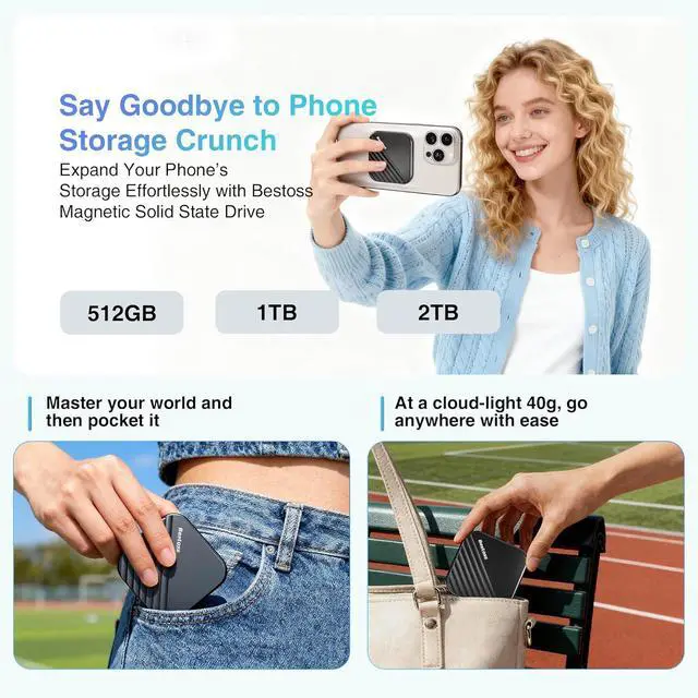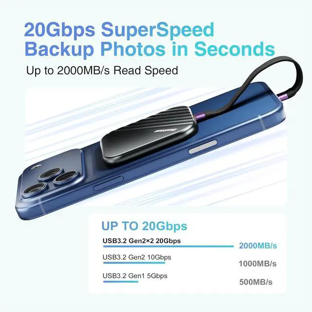 ProRes Recording & Save: Optimized for iPhone 15/16/17 Pro Series and professional devices, this MagSafe SSD for iPhone lets you record 4K 120FPS ProRes video directly to the drive. It's ideal for mobile filmmakers or photography enthusiasts looking for smooth, uninterrupted recording, It's the iPhone storage expansion for videographers.