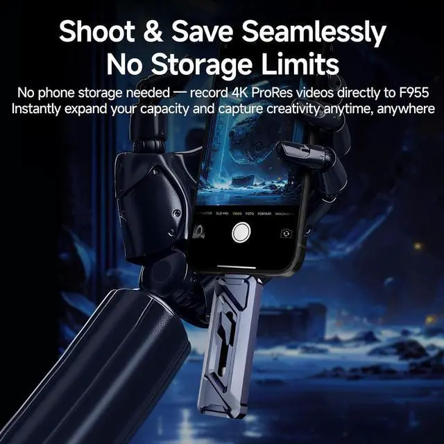 ProRes HDR Ready: Record 4K ProRes HDR video directly onto the F955 using iPhone 15 or laterno internal storage needed and no extra transfers. Files are accessible in Files > Browse > F955 instantly. Perfect for filmmakers and vloggers.