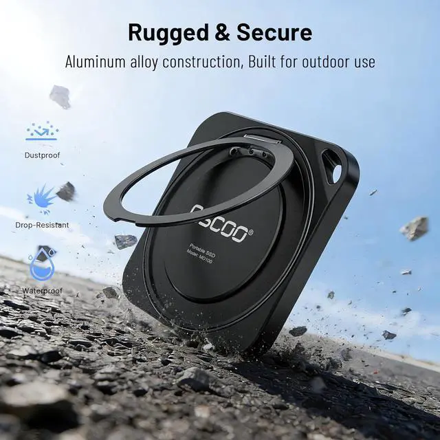 DURABLE ALUMINUM ALLOY& STABLE COOLING: Crafted from premium aluminum alloy for resistance to water, dust, and shocks, while enhancing heat dissipation for sustained performance during recording, gaming, and large transfers.
