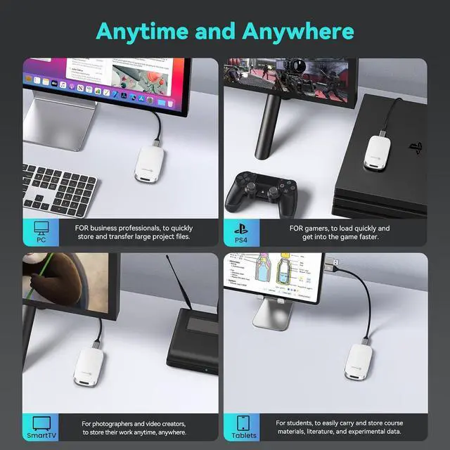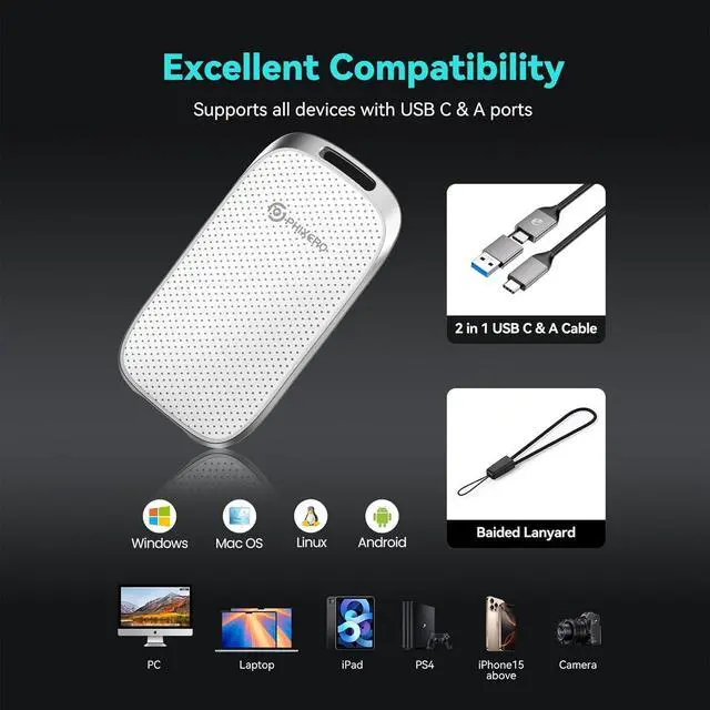 2-in-1 Data Cable IncludedComes with both USB C to C and USB C to A cables, ensuring seamless compatibility with all devicesnew MacBook/iPad Pro (USB C), old laptops (USB A), PS5, Xbox, Android phones, and moreno extra adapters needed