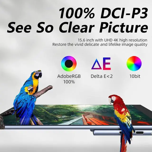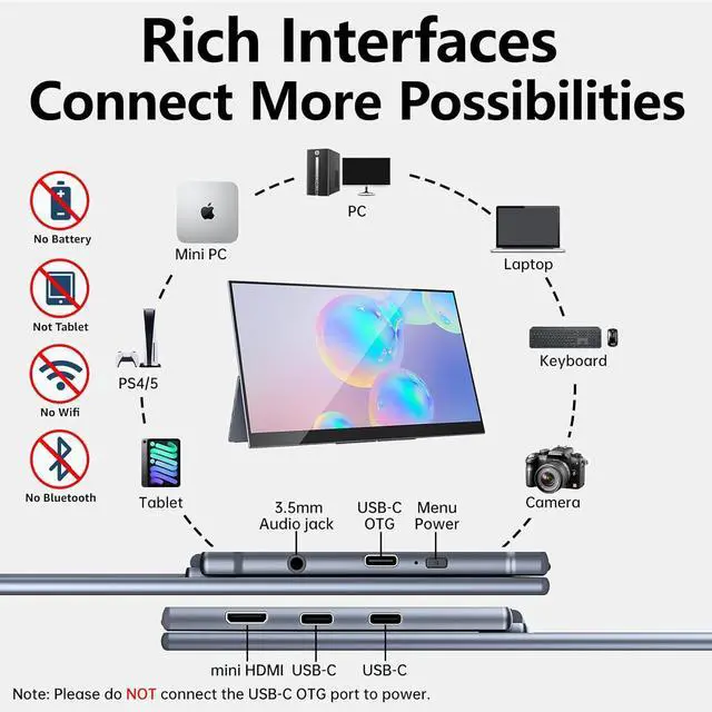 Get Start to Plug and Play: This 4K portable monitor is equipped with two USB-C ports (for video&power) and one mini HDMI port. Its compatible with most of the laptops. Also this OLED monitor has a USB-C OTG port for you to connect with keyboard or mouse. We recommend to use the original 45W PD power adapter for sufficient power supply