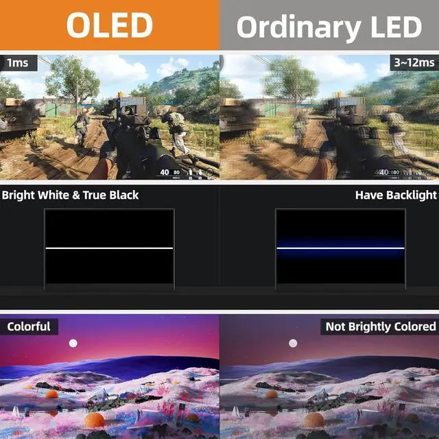Slim & Light Weight: Measuring only 0.17 inch at the slimmest point and 1.9 lbs weight, beautiful design, it's a good choice for business trip and travelling. This portable OLED monitor supports portrait and landscape mode to meet your different needs. We also provide a sleeve case in the box. With the patented kickstand, this portable monitor for laptop is ease to set up and stable, also saves your space on the desk