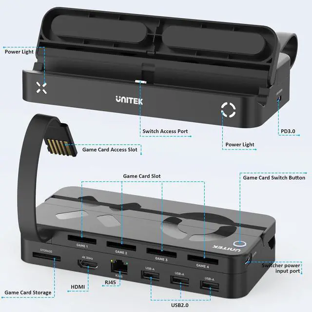 Multi-Port Available - This Switch TV dock features 1 HDMI port, 3 USB-A ports, 1 RJ45 port, 1 USB-C PD 3.0 power port, and 1 type-C game card switcher power port. If you have any questions, please dont hesitate to contact us via the Amazon message system. Were here to assist you.