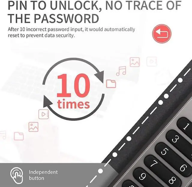 Reset & Wipe FunctionWhen inputting passwords wrongly up to 10 times, the U disk will reset automatically and wipe all data off it.