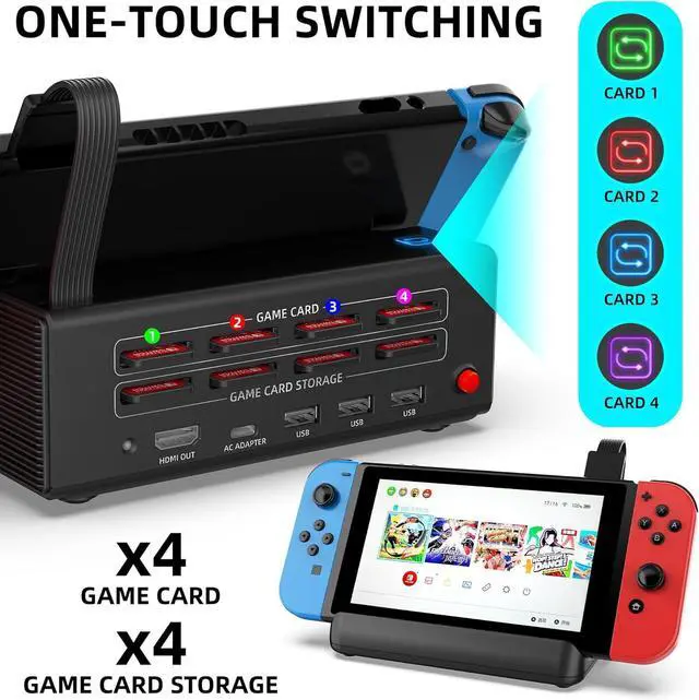 All-in-one Switch Game Card Reader and Game Card StorageSupports 4 Game Card Readers, One-click Switching Without Pulling Out, Allowing Your Game Console To Avoid Damage Caused By Frequent Card Changes, Stores 4+4 Game Cards To Make Your Gaming And Outdoor Experience Simpler