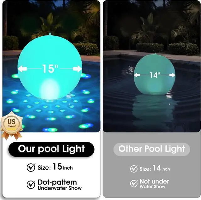 Auto-Solar Pool Light, Night BrillianceExperience unprecedented solar lighting innovation! Our upgraded monocrystalline panel employs cutting-edge tech, capturing 30% more sunlight than ordinary panels (20% conversion rate), storing energy faster under direct sun. Say goodbye to dim nightsit provides bright, stable lighting after sunset, solving insufficient brightness.