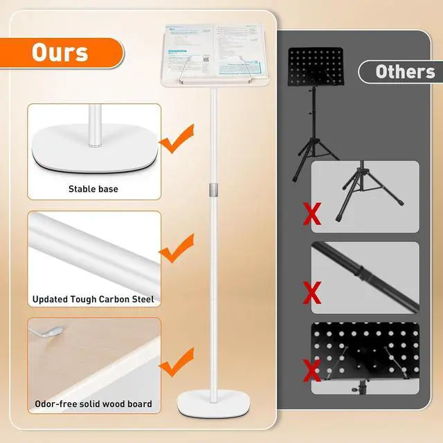 Quick Assembly & Portable DesignAssemble in minutes with all necessary tools included. Lightweight yet strong, its easy to move and storeperfect as a foldable standing desk, portable book stand, or music stand foldable for reading, presenting, or performing anywhere.