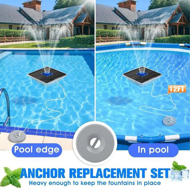 Keep Fountain in Place - Comes equipped with an anchor and a rope, which are the secret weapons to keep the solar pool fountain in place. It has three methods of use: firstly, place the anchor next to the pool to prevent the fountain from floating to the other side of the pool or getting stuck by the skimmer; Secondly, place the anchor inside the pool to hold the fountain in place, preventing water from splashing out. Thirdly, you can fix the anchor to keep it in the optimal position for maximum sun exposure