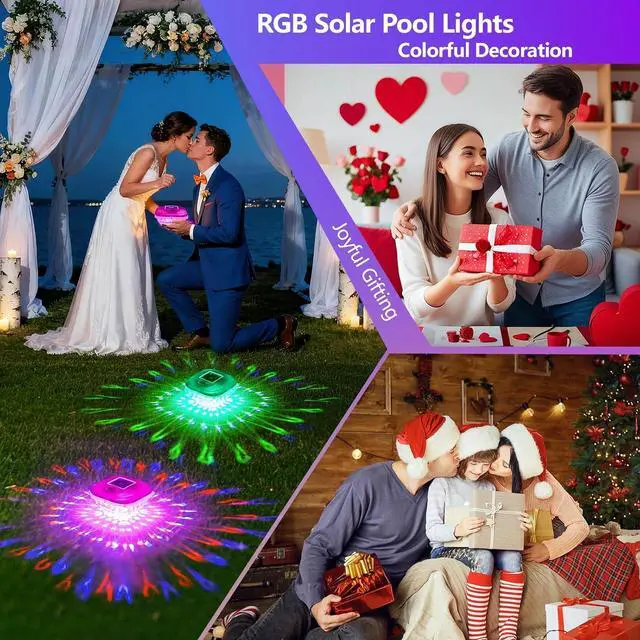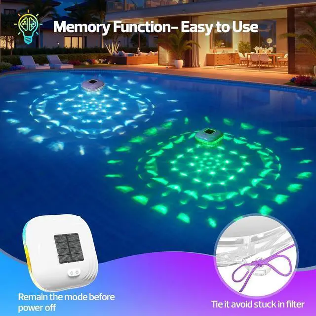 Easy Use & Compatibility: Pool accessories solar powered pool lights that float need no install. Instant fun and peaceful-vie for ponds, landscape, backyards, steps, garden paths. With Memory function, set your favorite color and lighting mode only once