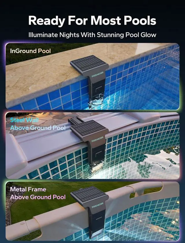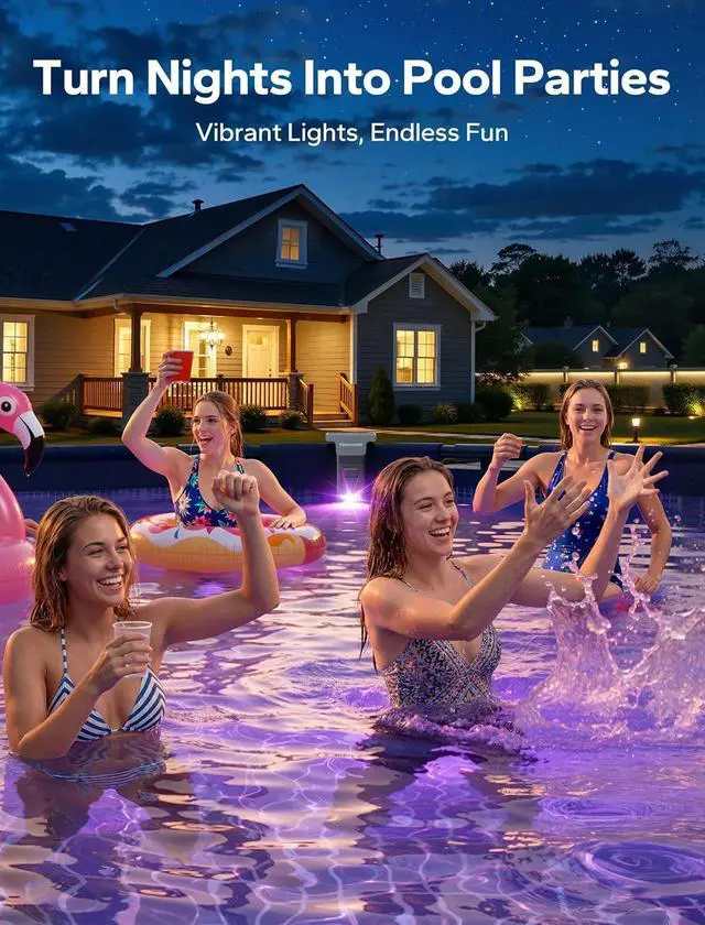 IMMERSIVE GLOW & SECURITY - With 6800 LUX ultra-bright lighting, your pool becomes a radiant oasis. Choose from 10 vibrant colors and 4 dynamic modes, powered by 42 high-quality LEDs for rich hues. The curved diffuser ensures even, soft illumination. Perfect for family nights, pool parties, or romantic swims. When your pool steps are dark, boost to 100% brightness and drive away the darkness!
