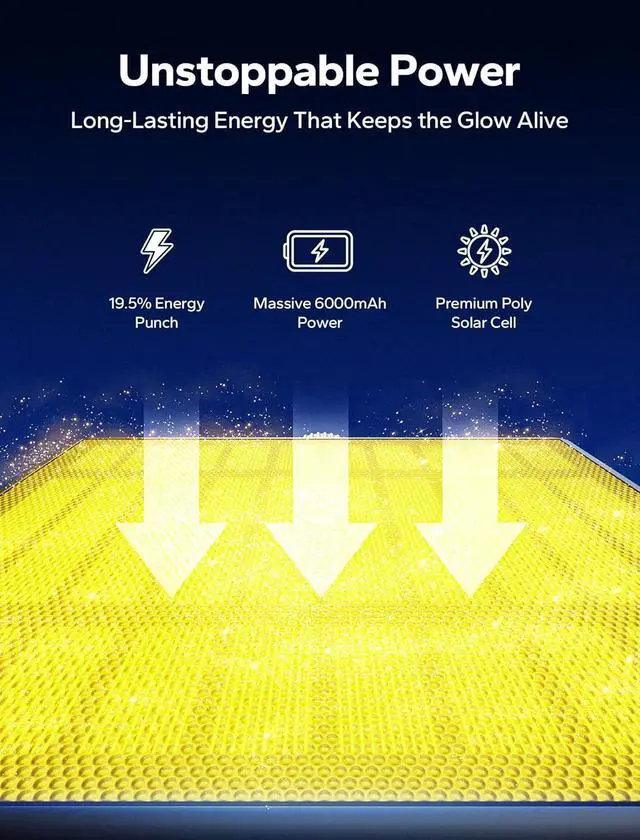 THE BOUNTY OF THE SUN - Forget frequent charging and messy cords! Equipped with a high-efficiency ETFE monocrystalline silicon solar panel, it packs a 6000mAh battery that can run up to 24 hours on a full charge in low-power mode. Built tough to resist extreme heat and UV rays, it delivers reliable performance even during the hottest months!