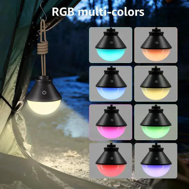 WARM WHITE: Adapt your lighting to any situation with two distinct modes (Yes, easy to switch via simple touch control). Select vibrant RGB colors to create festive atmospheres, or choose the practical warm white mode with three adjustable brightness levels (including the bright 600 lumen setting). The simple touch control lets you tap to cycle options and hold to power on/off, making this camping light versatile for mood lighting and functional use