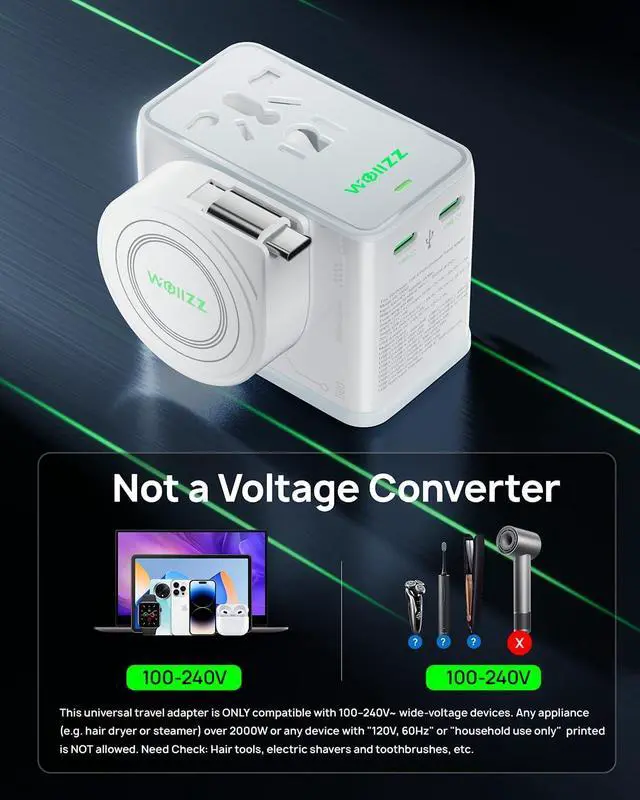 WORLDWIDE ADAPTER: All-in-one international power adapter with four retractable plugs for 200+ countries and regionsfar beyond a simple European travel plug adapter.