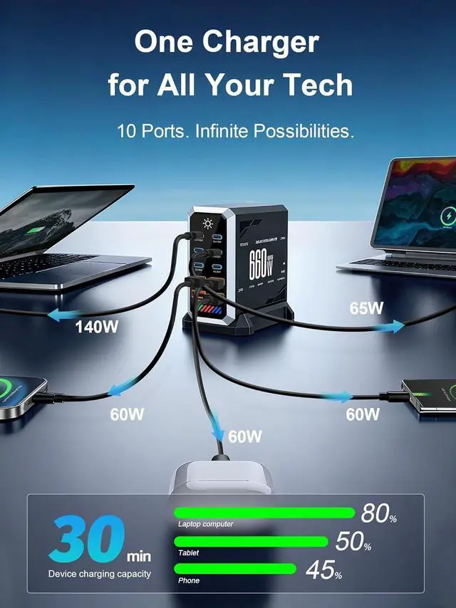 Advanced GaN3 Technology: Compact and efficient with next-gen Gallium Nitride (GaN3) chip, offering faster charging with less heat and a smaller footprint