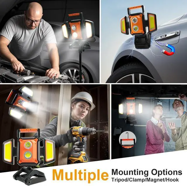 Versatile & Durable Lighting for Any Task: With 5 adjustable brightness modes and an IP65 waterproof rating, this work light rechargeable provides customizable lighting for any situation. Whether working on detailed tasks, illuminating large areas, or facing tough weather, this magnetic work light delivers reliable performance. Backed by a 12-month warranty, our 7x24-hour customer support team is always ready to assist you with any questions.