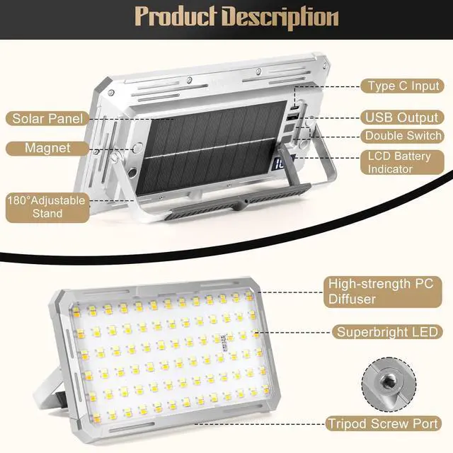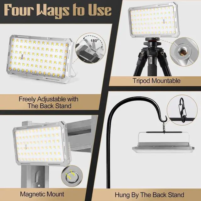 Hands-Free Magnetic Base & Adjustable Foldable Stand-Strong built-in magnets let you attach this light firmly to any metal surface car hoods, toolboxes, or machinery freeing your hands to focus on what matters. The foldable stand easily adjusts to multiple angles, offering stable illumination whether placed on the ground, hung, or mounted. Its built to move with your work.