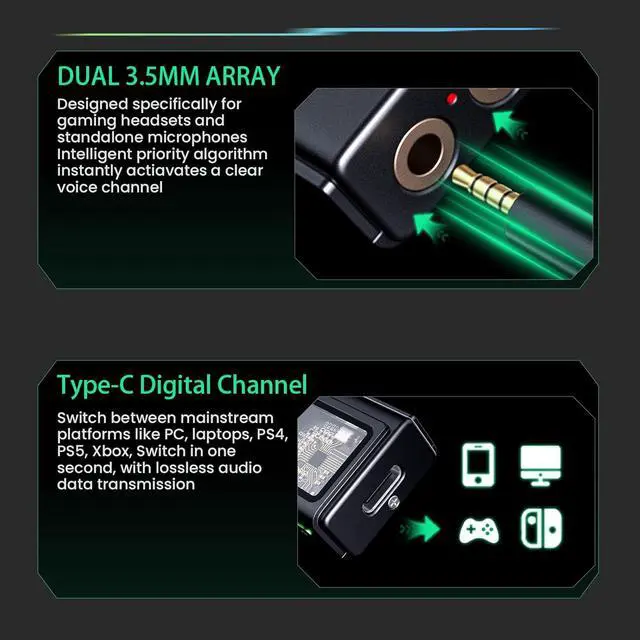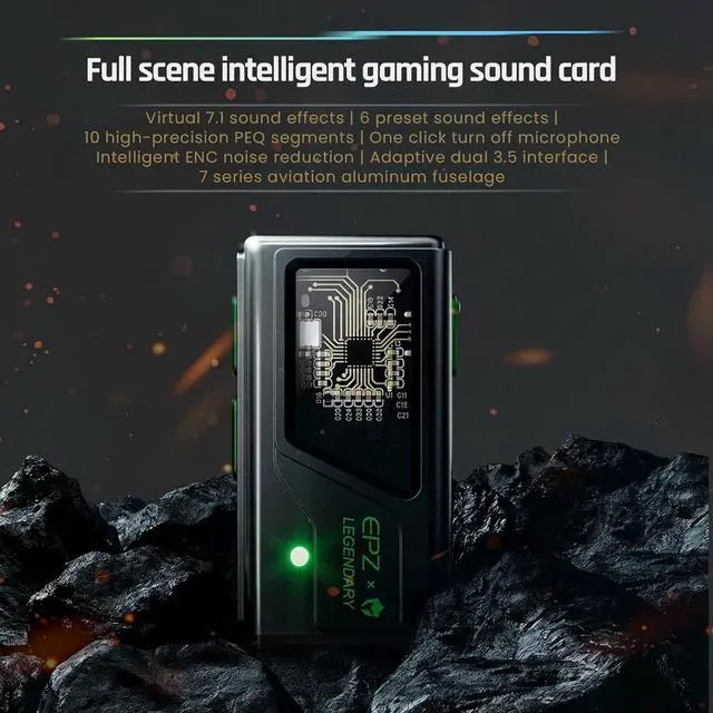 Compact size&mighty audio powerBoasting a precision gold-plated circuit layout and high-quality capacitor matrix, Compact size, mighty audio power, with a clean visible design. Its not just a sound card, its a vivid, eye-catching cyber centerpiece that beats like a heart on your desktop.