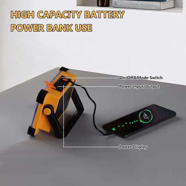 Portable IP65 Waterproof - Weighing in at only 0.74 lbs, the compact mechanical work light features a unique handheld and 180° folding stand design. IP65 waterproof performance ensures that the rechargeable work light won't get in the way of people working in the rain