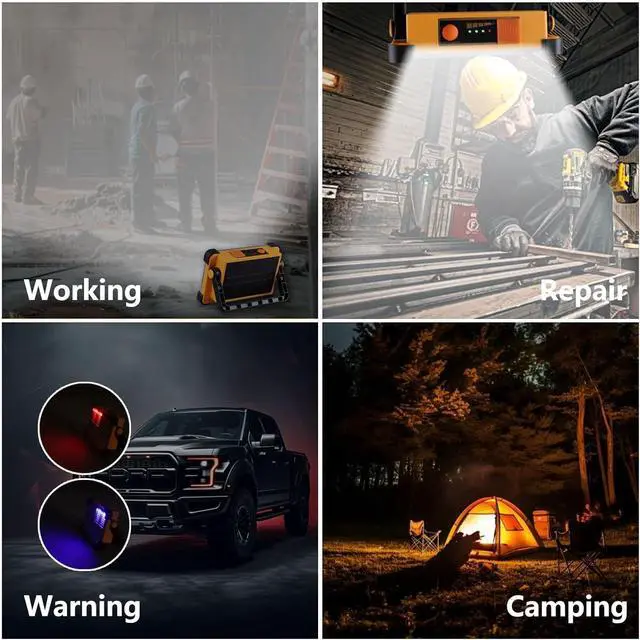 Wide Use - The rechargeable work light with stand has a 180 degree swivel handle to adjust the lighting area, perfect for job sites, garages, camping, car repairs and more! 2 years for you to buy with confidence! Please fully charge it for the first time to have a better experience
