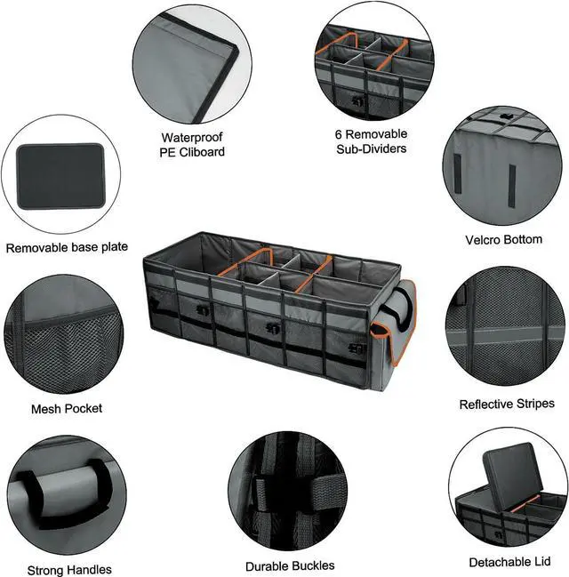 This kind of trunk organizer is designed with large capacity. Each individual compartment helps you find the thing you need accurately.