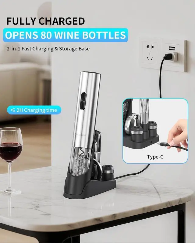 Effortless for Everyone - Say goodbye to broken corks and hand fatigue, so that more people can enjoy the pleasure of fine wine without obstacles. Durable stainless steel rechargeable wine opener with a transparent housing for clear visibility of the uncorking processeffortlessly opens standard wine bottles and corks every time