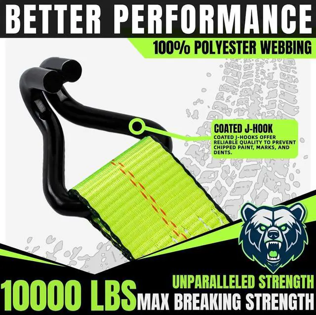 VERSATILE USE WITH SECURE&HEAVY DUTY J-HOOKSEquipped with double J-Hooks that easily latch onto standard trailer rings, truck beds, and anchor points. The 2-inch width distributes force evenly, while the 27-foot length offers ample reach for securing large items like cars, motorcycles, pallets, furniture, and construction materials.