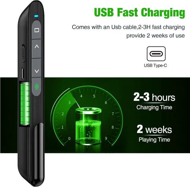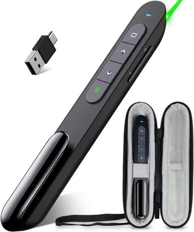 of PowerPoint Clicker1. Magnetic usb storage prevent from losing 2. Pen-like size is good to slip into a pocket 3. Buttons are easy to find without looking. Its a functional classroom and office gadgets to assist with PowerPoint presentations