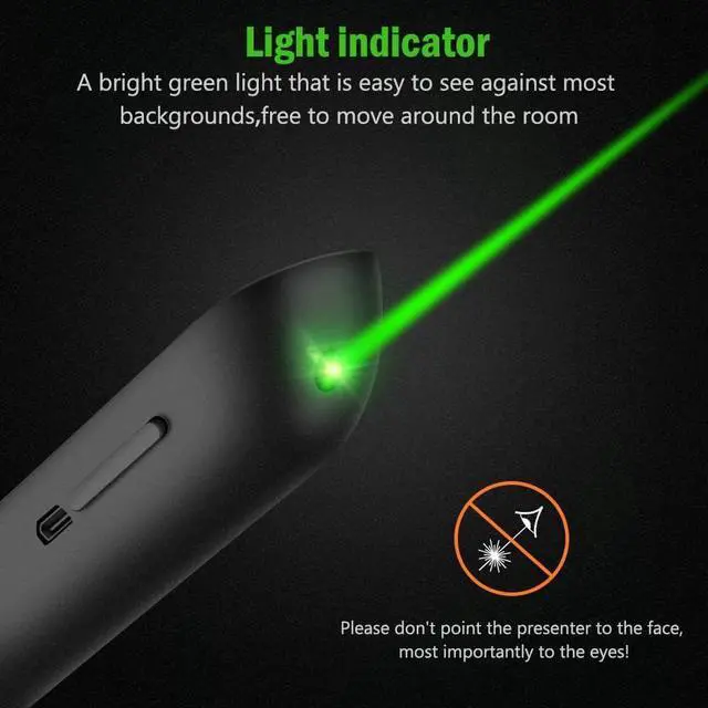 light range: 300FT, so you can walk around the room instead of standing by your computer switching slides, allows for a smoother and more dynamic presentation