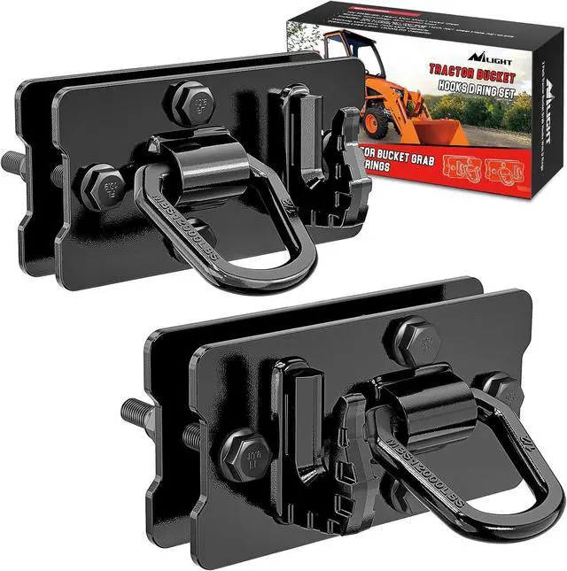 Package Includes-2PCS 3/8'' Grab Hook, 2PCS 1/2" Forged D ring, 4PCS Steel Plate, 8PCS Grade 10.9 Locking Bolts &Nuts. It is a Good Helper for Your Tractor Bucket Work