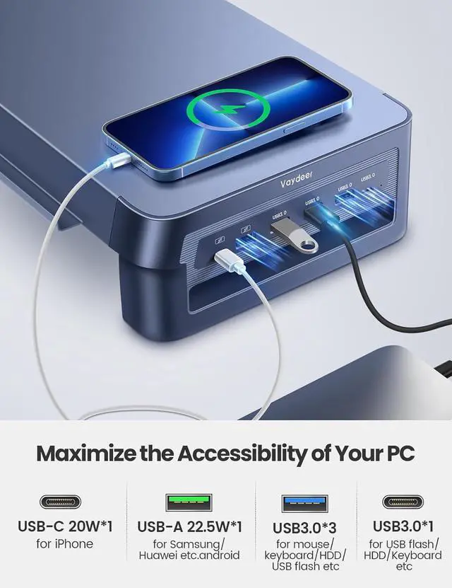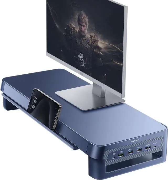 Desk Space OrganizerThe dual monitor stand riser provides large space for you to organize your office supplies and accessories like a stapler, sticky notes, keyboard, mouse, DVD players, cell phones, iPad, gaming devices for a more productive and tidy working environment