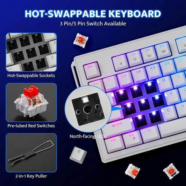 [TKL RGB & Wide Compatibility] Compact 80% TKL layout saves desk space while keeping essential keys. 16.8M RGB backlighting, software customizable, plug-and-play wired keyboard for Windows and macOS.
