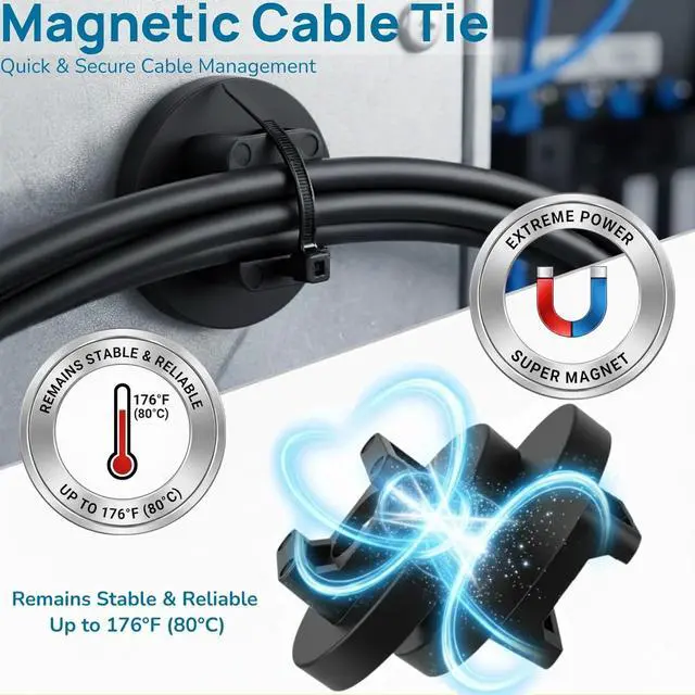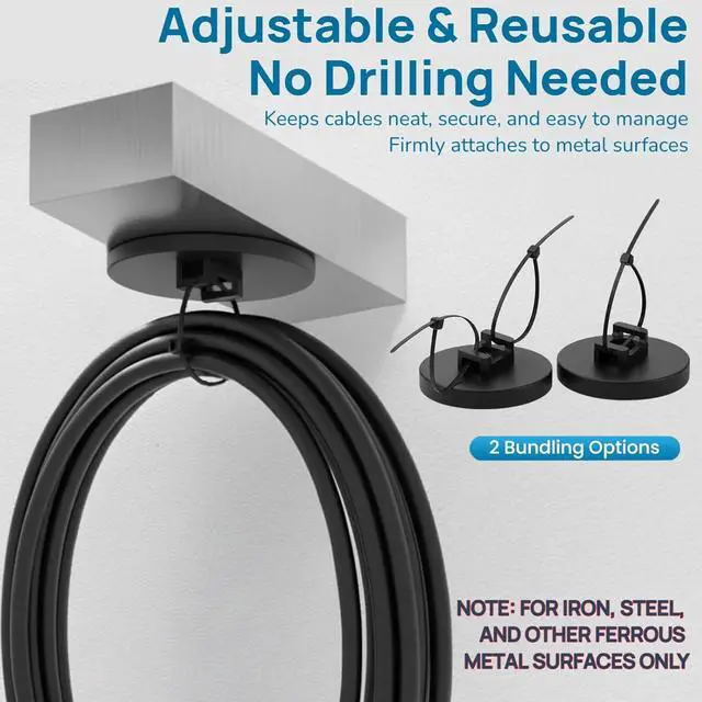 Wide Applications: Ideal for home, office, workshop, warehouse, garage, or automotive use. These magnetic cable ties secure wires, chargers, network and electrical cables, hoses, and lighting cords to any ferrous metal surface. Strong magnets easily hold thick cables and work reliably indoors and outdoors