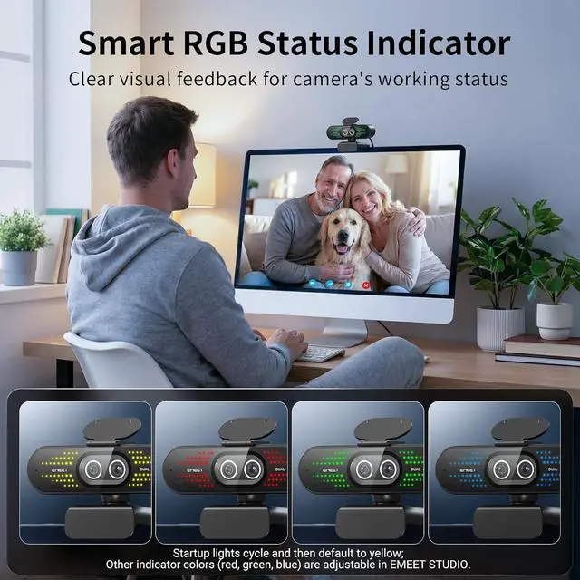 Professional RGB Status Lighting with Refined Design The 4K webcam uses subtle RGB lighting primarily as a clear status indicator during use, helping users quickly confirm camera activity in meetings or personal video calls. Beyond functionality, the restrained RGB accents add a modern, polished look that is more visually appealing than traditional webcams, without distraction. It works reliably as a web cam, camera for PC, and 4K webcam for streaming in professional and home workflows.