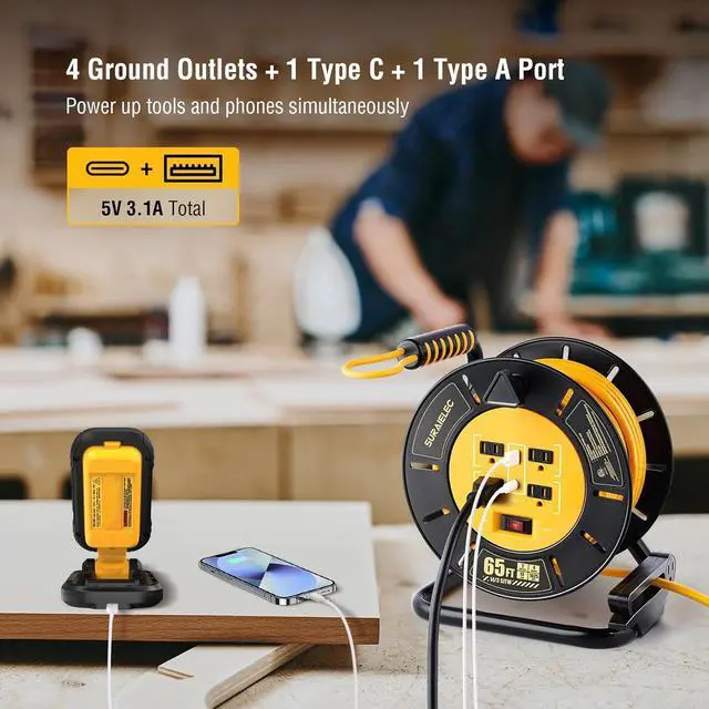 ETL Listed for Indoor & Outdoor Dry Locations: Tested for safety and certified by ETL, this electric cord reel uses a durable SJTW cable that resists abrasion and sunlight. A rugged power solution for indoor work or outdoor dry-area use
