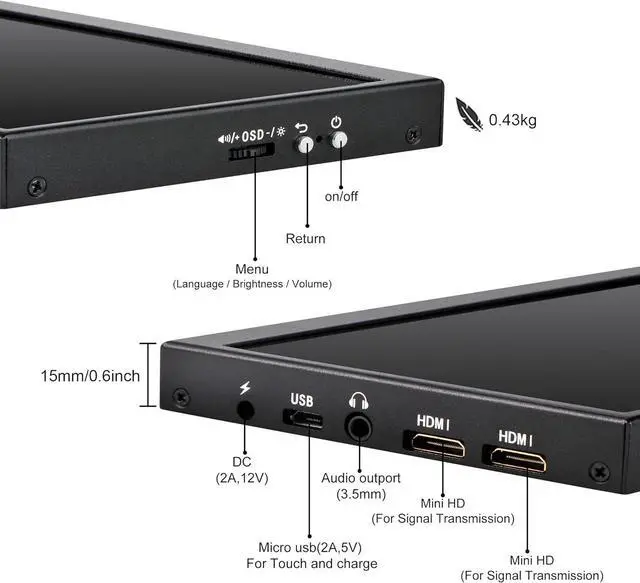 Easy to use Plug and Play PortableNo driver needed. This monitor has four screw holes behind it, the spacing of the screw holes conforms to international standards, making it convenient for you to install this portable display wherever you want.