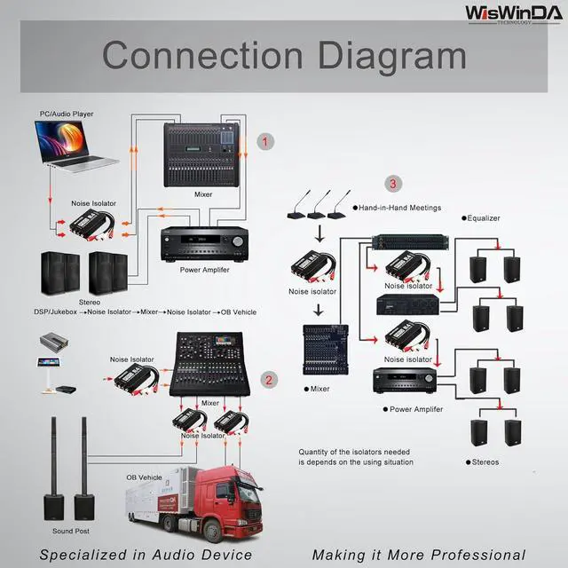 4. HiFi Performance--The Ground Loop Audio Noise Eliminator could work with car stereo, amplifiers, speakers or mixers, with stable performance, high precision and good reliability. Let you eliminate car speakers / home stereo systems humming sound away and enjoy a perfect sound.