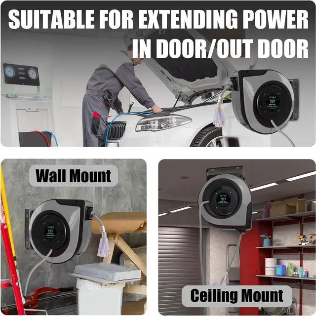 Versatile 180° Swivel Mounting- Wall or ceiling install with multi-directional access Sturdy construction for garages, workshops & job sites.