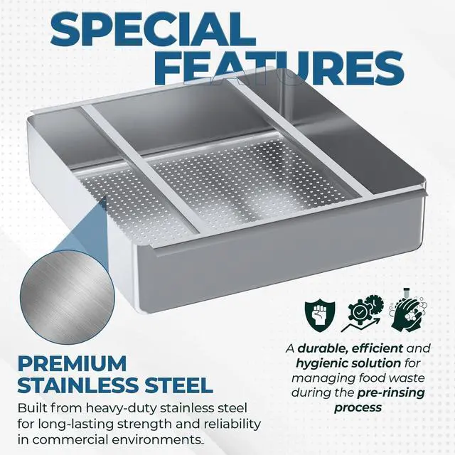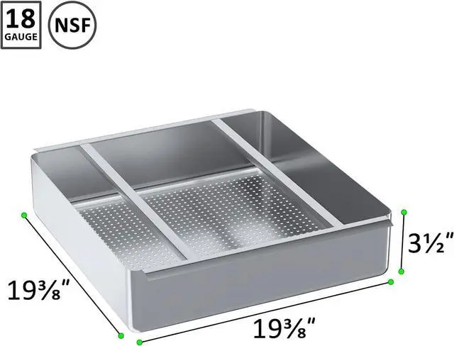 Large Capacity 19 3/8" x 19 3/8" x 3.5" size fits perfectly into most standard commercial sinks for efficient waste collection.