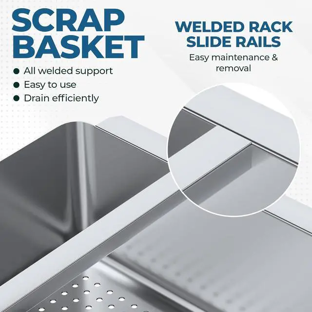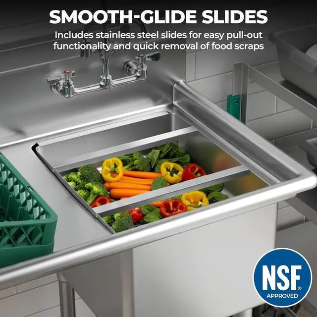 Smooth-Glide Slides Includes stainless steel slides for easy pull-out functionality and quick removal of food scraps.