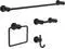 The smooth lines and elegant form of the Nicoli Bath Collection pairs effortlessly with modern or modern farmhouse decor. Bring a cohesive look to your bathroom decor with this matte black bathroom set. The collection also has a faucet match and complements bath accessories in the same finish or go bold with mixed metal style. Installation is a breeze, no guesswork, no stress. Everything you need is in the box. All youll need is a Phillips screwdriver to transform your space in a weekend. Wall-mounted bath hardware keeps your room tidy without taking up floor or counter space. Get organized with this 4-piece complete set. It includes an adjustable towel rack that can be 18 or 24 inches, toilet paper holder, towel ring for hand towels or washcloths and a hook to hold towels or robes. These space-saving bathroom accessories are essential for renovations, updates, or new home builds. You can be confident in the lasting performance and elevated style of your bathroom hardware with 's trusted craftsmanship and a lifetime limited warranty.