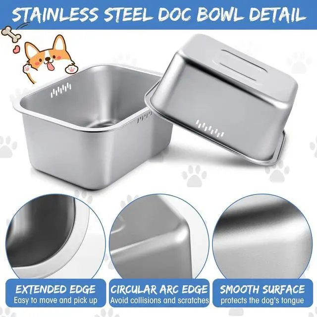 Practical Design: the large dog bowls will not overflow or slip; The metal dog bowl is deep enough to hold food and water in the bowl; The bowl has a large mouth and a large surface area, making it convenient for you to add food or water to your dog