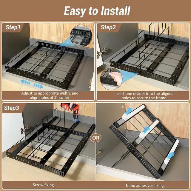 Installation Methods: The cookie sheet organizer for cabinet provides 2 installation methods: one is self-adhesive installation, which is simple and quick to operate without the use of any tools; the other is screw fixing, which is more stable after installation and can effectively prevent displacement during use. Users can choose the appropriate installation method according to actual needs, providing greater flexibility.