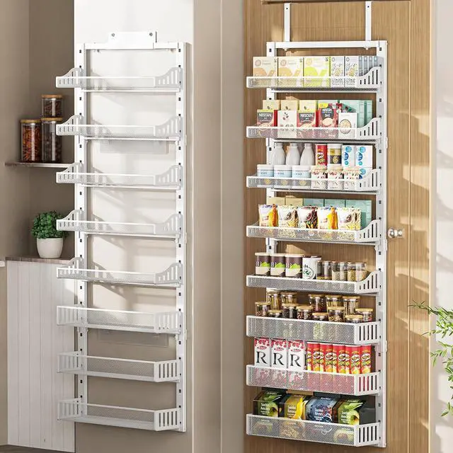 UPGRADED THICKNESS AND COATING FOR DURABILITY: Made with thicker, rust-resistant materials and coated with a waterproof finish, each basket has a weight capacity of up to 30 pounds. The two types of super-strong, traceless nano adhesives included prevent shaking and provide extra protection for both the door hanger and the door, ensuring extended use.