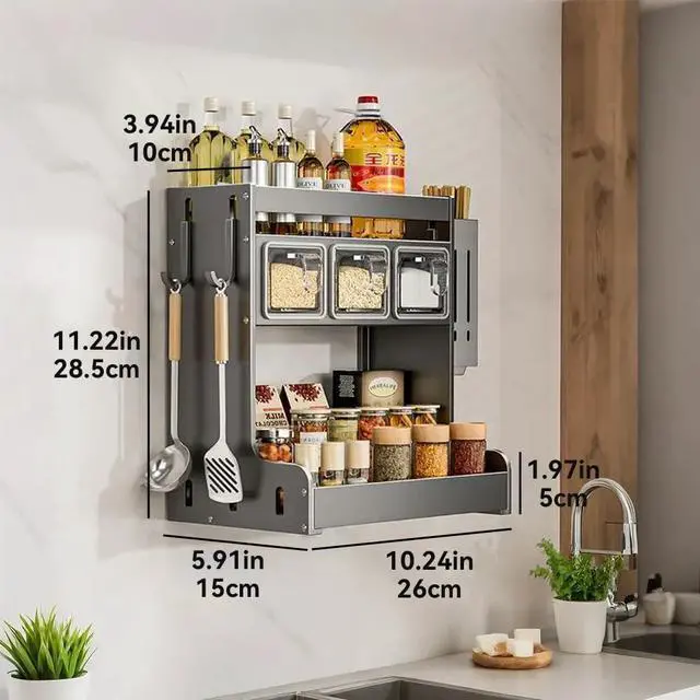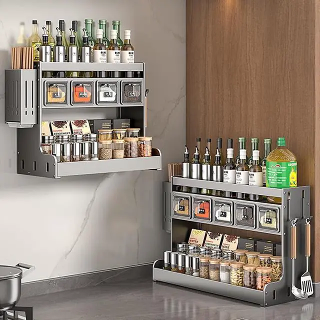 Package Included: This set includes a kitchen rack, 3/4/5 spice boxes rack and installation materials